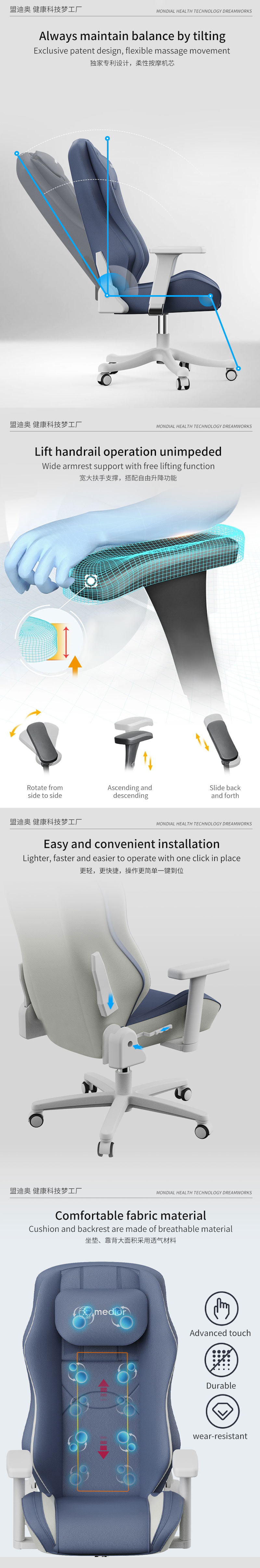 頸部揉捏按摩功能并能順時針和逆時針兩個方向旋轉(zhuǎn)頸部上下高度可調(diào),以適應(yīng)不同使用者的身高。