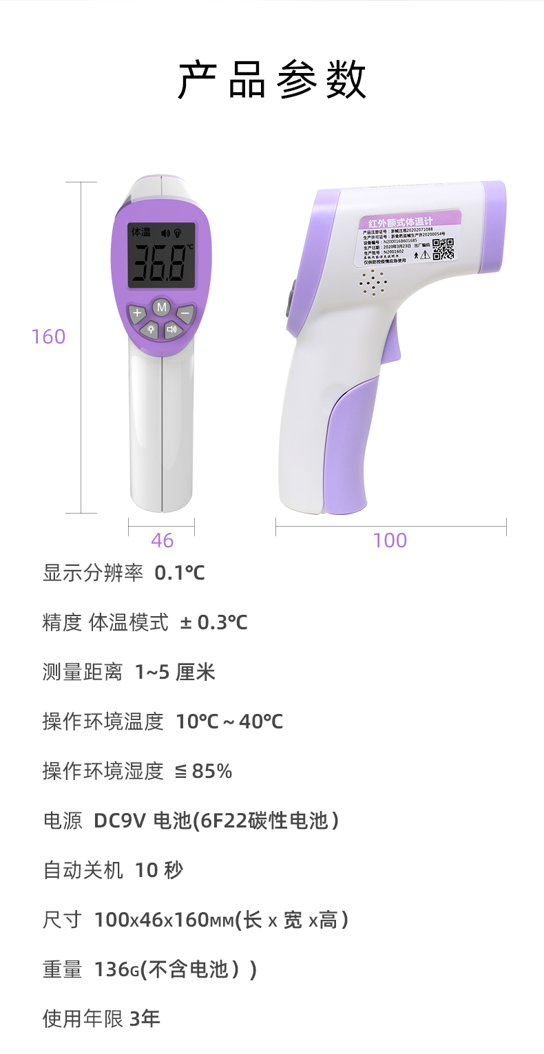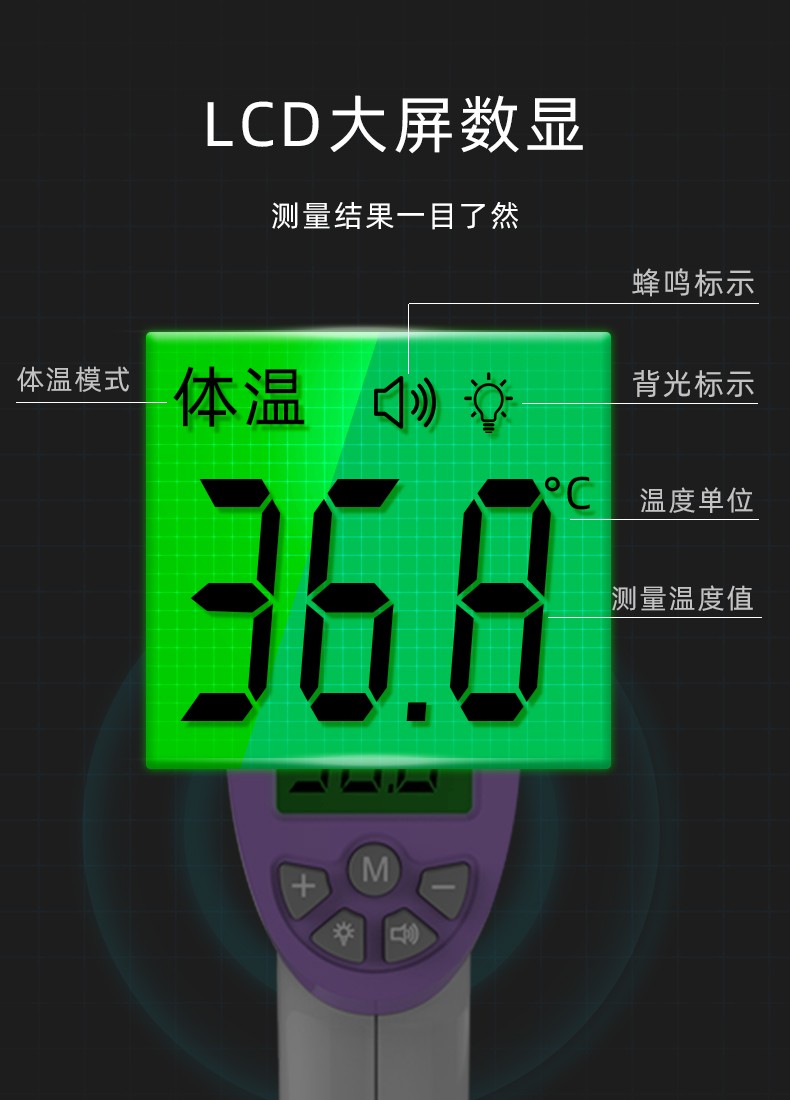 一秒的精確溫度測量。 高密度紅外傳感器,自動(dòng)溫度測量,精確計(jì)算