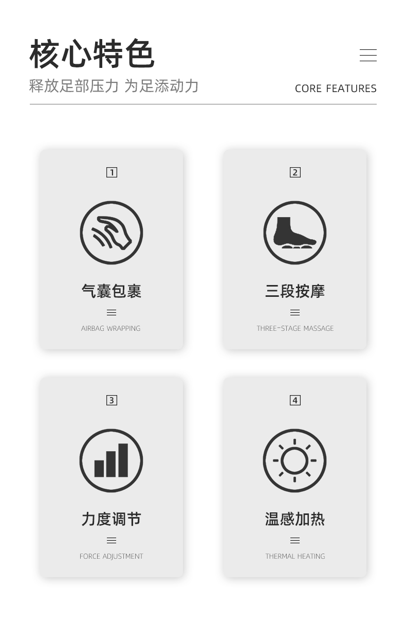 腳底 滾輪按壓(腳趾)、刮痧(腳底)、頂(腳后跟)按摩 (多模式,多強度)